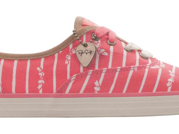 A marca de tênis Keds lança coleção em parceria com a cantora Taylor Swift, sete vezes vencedora do Grammy e que chama a atenção no palco e em tapetes vermelhos por seus looks elegantes e modernos. "Eu acho divertido fazer experimentações com seu estilo. Sapatos são uma grande oportunidade para acrescentar um toque de cor ou algo inesperado no look", diz a cantora. Os tênis, que chegam às lojas do mundo todo até o fim de março e custam R$ 169,90, tem estampas inspiradas nas formas preferidas da cantora: bolinhas, listras náuticas, zig zags e floral. Nas cores amarelo, vermelho, verde água, coral, azul marinho e turquesa, as peças têm palmilha e acabamentos combinando, além de um pingente em formato de palheta assinado pela cantora.